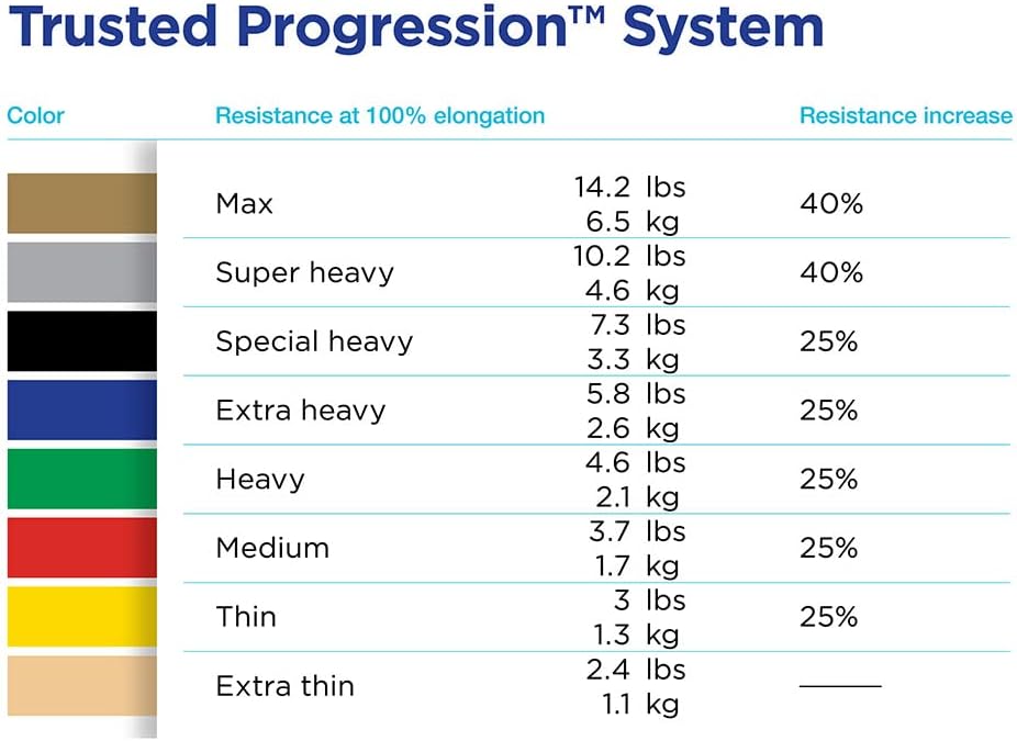 Color-coded Progressive Resistance system allows users to recognize improvement as it happens, as you grow stronger you can move up to the next color