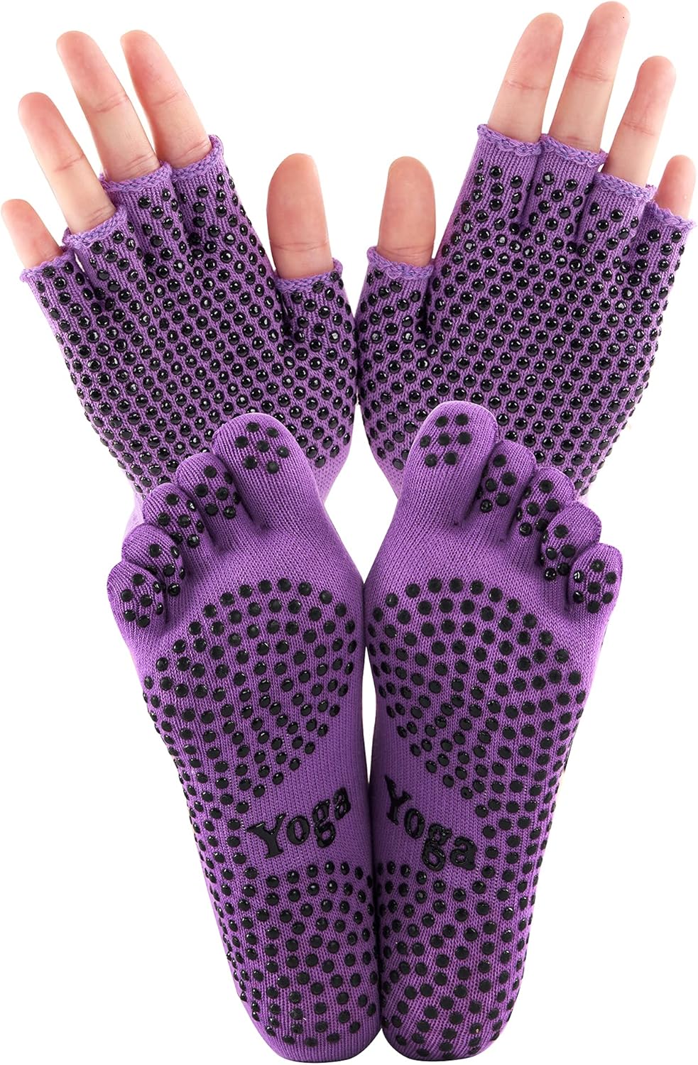 ThreeH Yoga Socks and Gloves Set Non-slip for Women Yoga Dance and Pilates with Toes Size4.5-7
