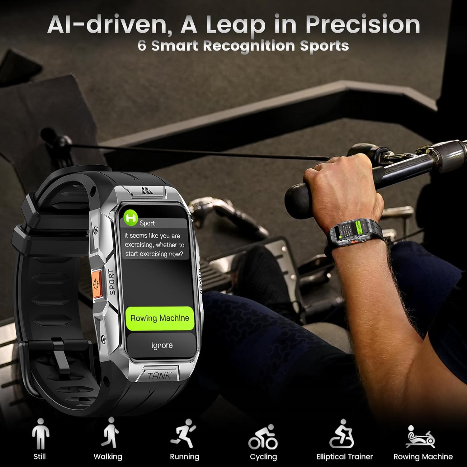 70 Sports Modes,Multiple Health Monitors-Equipped with the cutting-edge VP60 bio-tracking optical sensor, the fitness tracker achieves unparalleled accuracy in monitoring 24-hour heart rate etc. With its built-in 70 sports modes and 6 Intelligent Sports Recognition, TANK X1 assists you to unlock novel, exciting sport experiences. Collects and analyzes data in sports and health like your personal trainer.