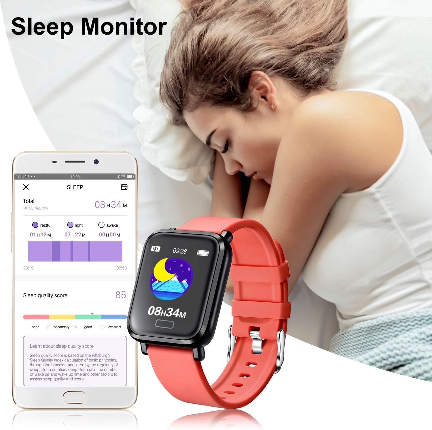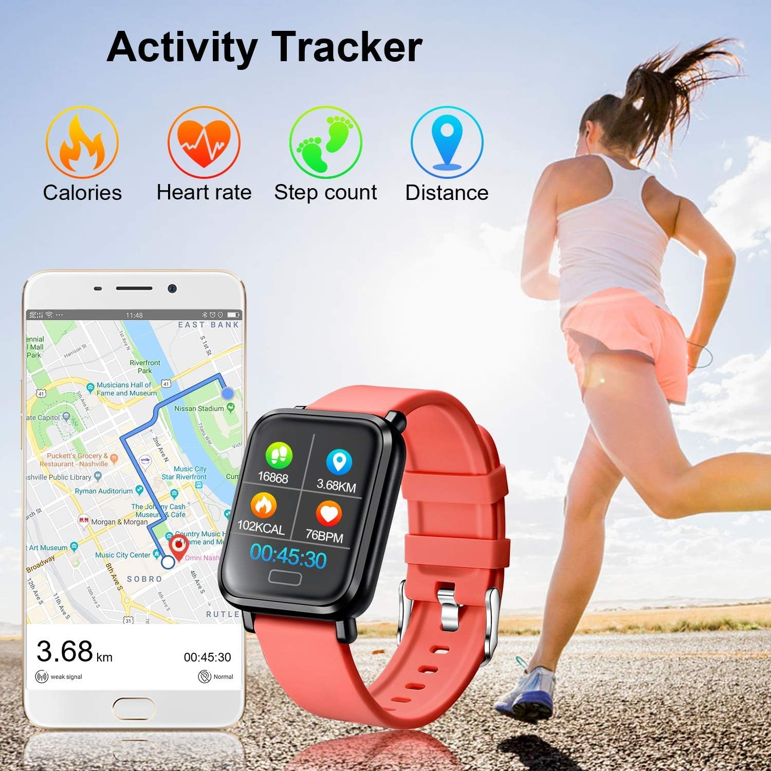 Tipmant Smart Watch, Fitness Trackers With Heart Rate Monitor Blood Pressure Podometer Stopwatch, IP68 Waterproof Fitness Tracker Watch, Smart Watches for Women Men Kids for iPhone & Android (Red)