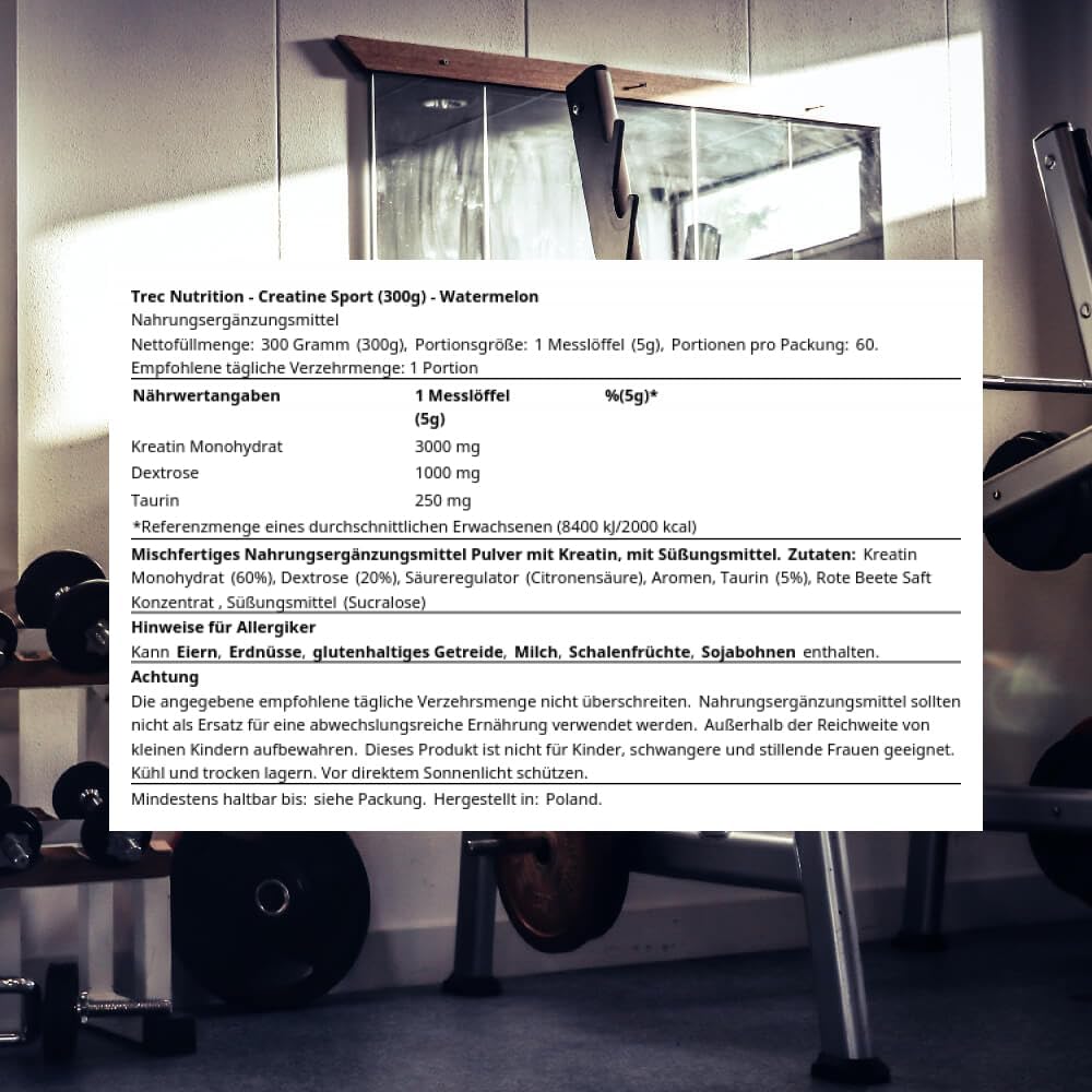 TREC Nutrition Endurance Creatine Sport, Watermelon – 300g | Boost Endurance, Enhance Performance | Ideal for Runners, Swimmers, Cyclists | Creatine with Dextrose and Taurine for Rapid Absorption