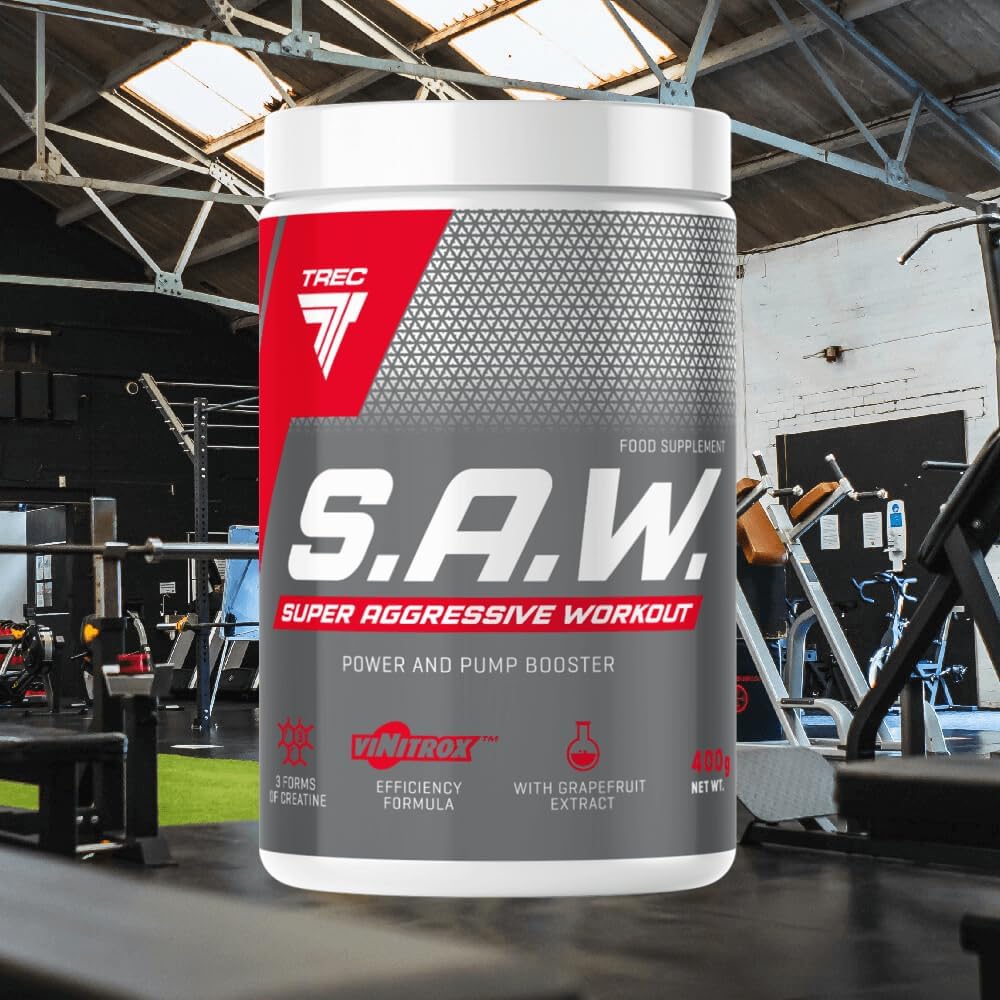 TREC Nutrition S.A.W – Pump Supplement – 400g Powder – Cherry-Grapefruit – Amino Acid – Arginine – Citrulline – Beta Alanine – Taurine – Extracts of Grapes – Caffeine – Creatine