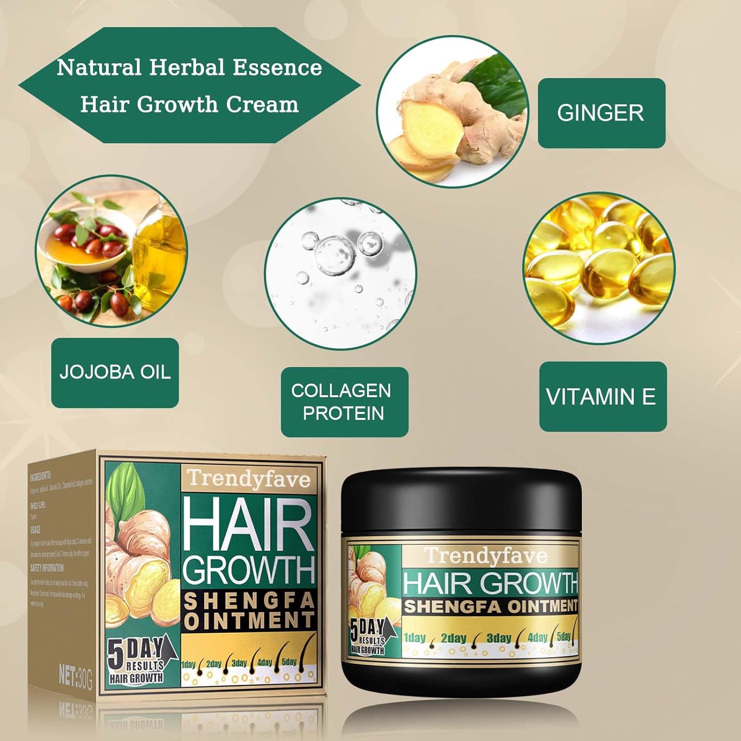 ✨Trendyfave Hair cream for hair growth contains ginger root and a variety of Chinese herbal plant extracts, they can promote the healthy development of hair and scalp, and the hair becomes dense and supple.