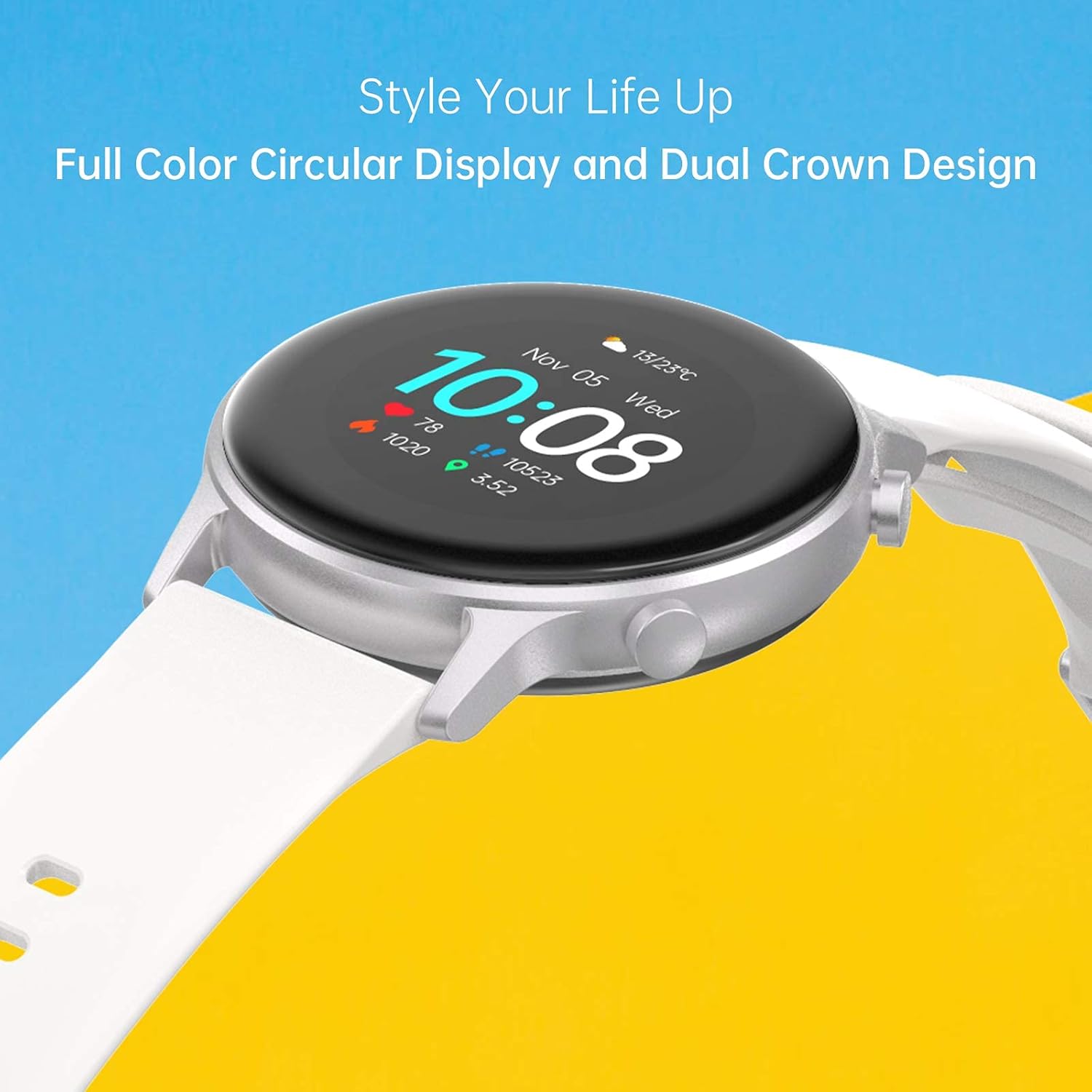 🌈【Fashionable smart watch for women and men】 UMIDIGI Urun S is a round smartwatch, 44mm in diameter, constructed by a light-weight Aluminum frame. Displayed by a 1.1 inch round full-color screen, two crowns on the right side together with a touch screen, providing an easier and faster operating experience. The best gift for your family, children, friends, etc.