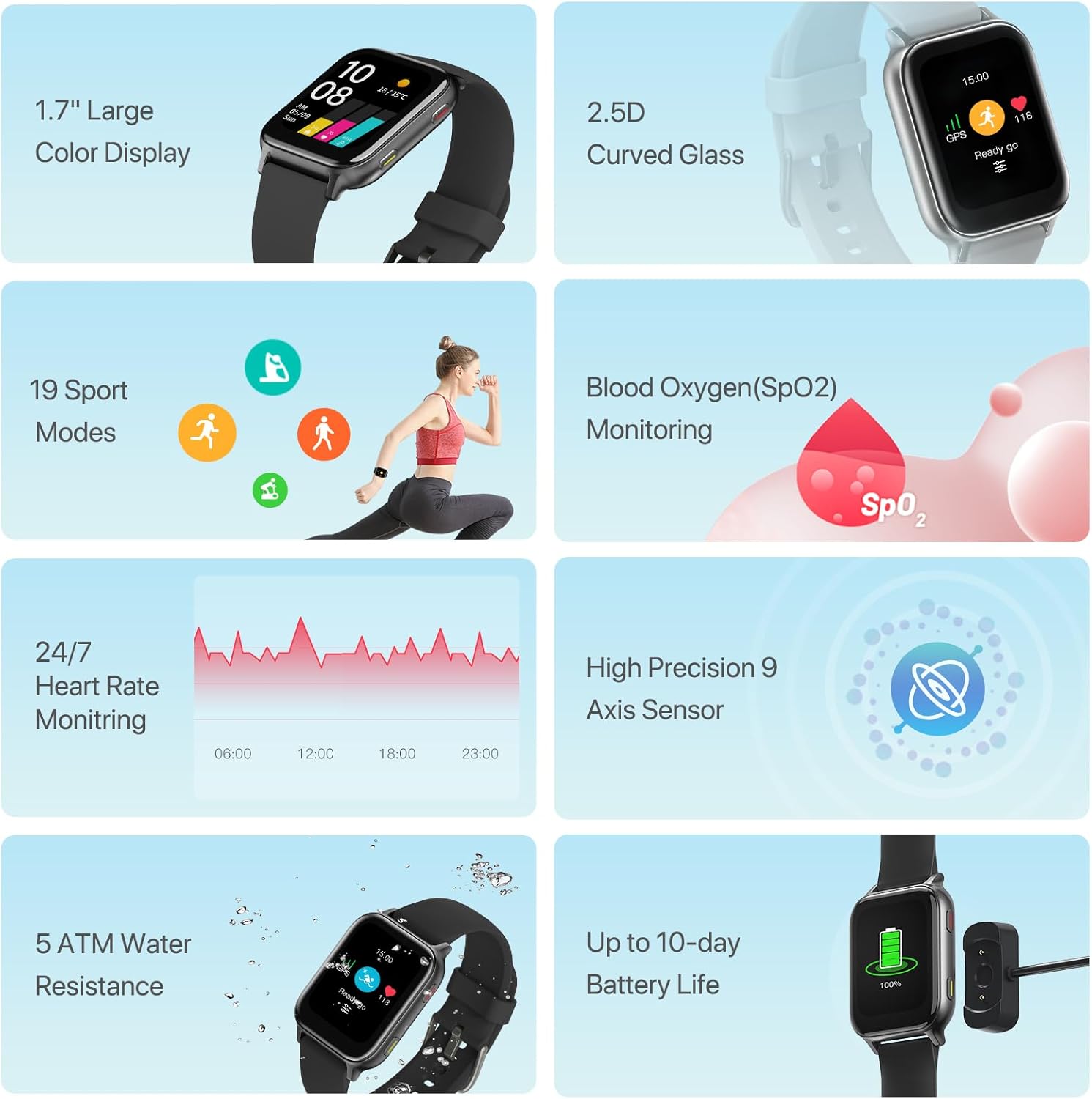 UMIDIGI Smart Watch,Uwatch 5S for Men Women, Fitness Tracker 1.7″ Touch Screen,Fitness Watch with Heart Rate Sleep Monitor SpO2 Oxygen Saturation,Detection Step Counter,Waterproof Smartwatch (Black)