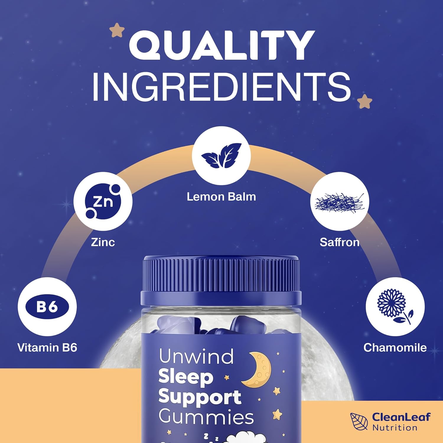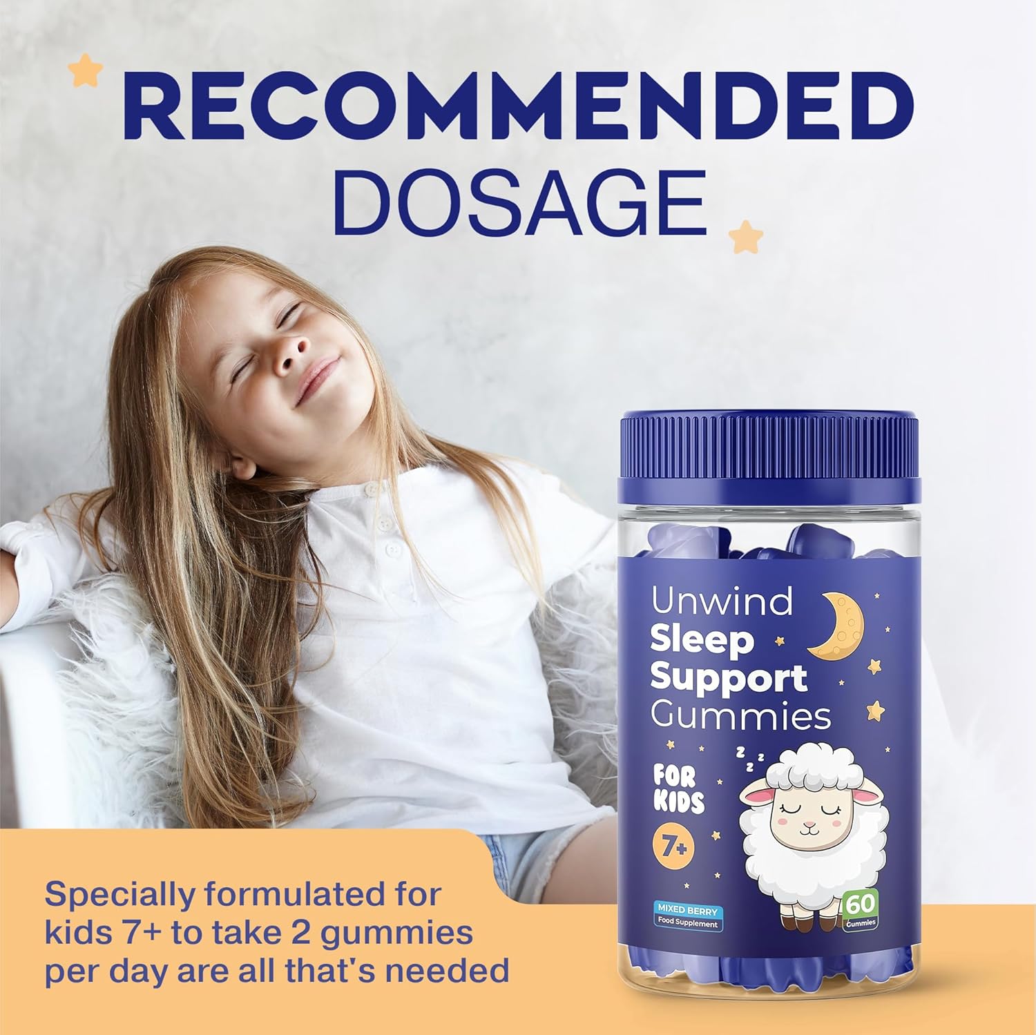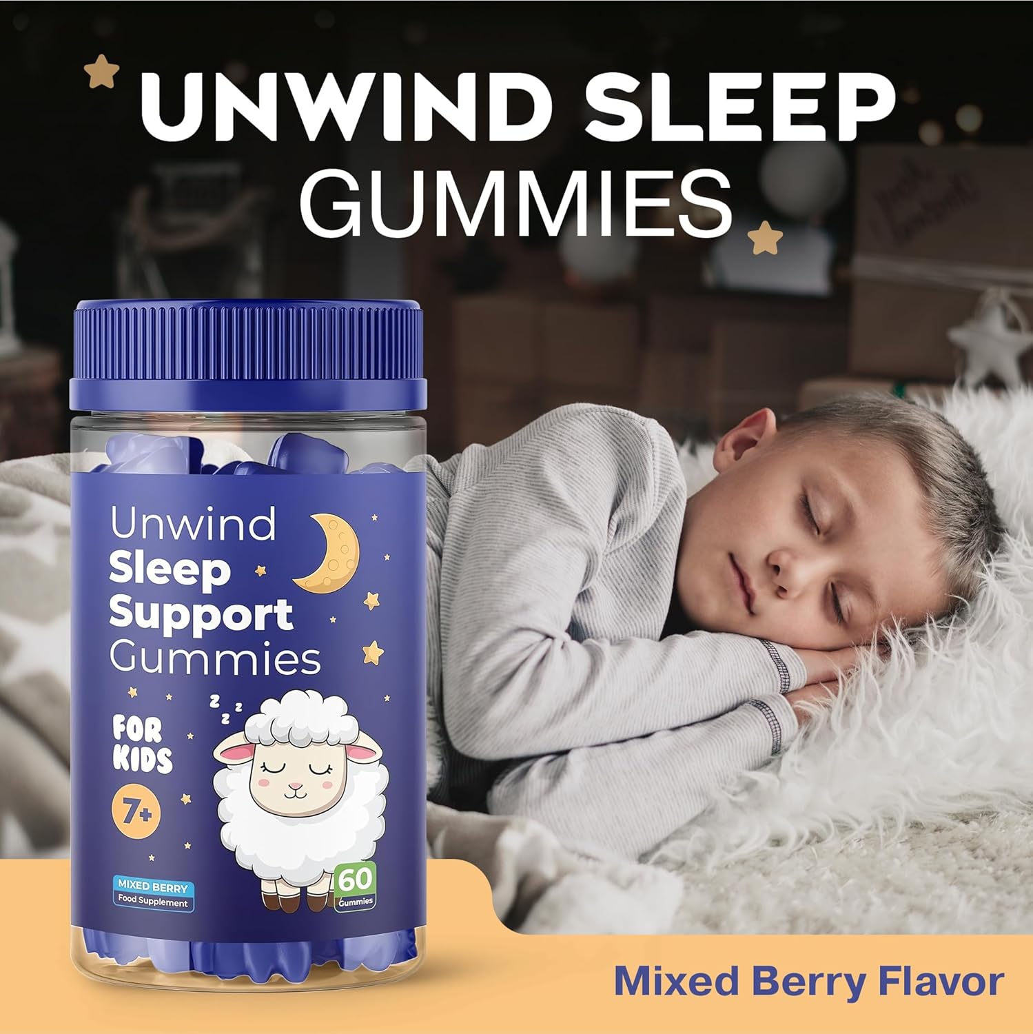 Unwind Sleep Support Gummies for Kids – Formulated for Restful Nights, Childrens Sleep Gummies Promoting Natural Sleep Production, Promotes Healthy Sleep Patterns, 60 Count