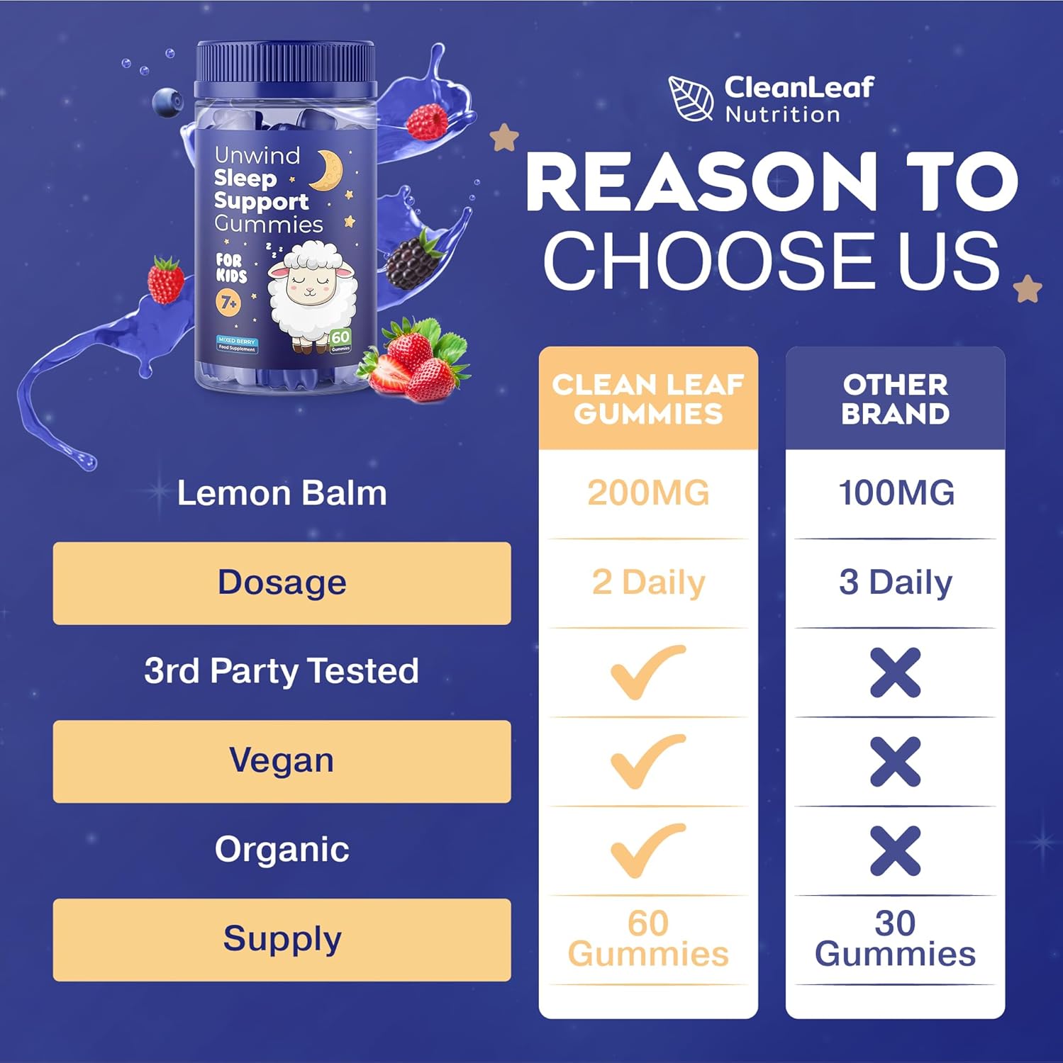 Kid-Friendly Flavor: Unwind Sleep Support Gummies for Kids 7+ are specially formulated to appeal to young palates. Each gummy bursts with a delicious mixed berry flavor, making them a treat that kids will eagerly anticipate. This natural flavor profile ensures that encouraging a healthy sleep routine is both enjoyable and hassle-free for parents and kids alike.
