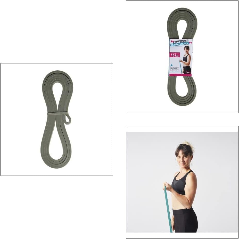 Resistance band, elastic band pilates – Resistance: 15 kg – Designed for strength training, cross-training or physical preparation sessions – Length: 208 cm, width: 1.2 cm, thickness: 0.5 cm – Colour: Grey – Allows you to target specific muscle groups – Product light and easy to store – Material: Latex – Size: 13 x 280 x 280 x 0.177 cm