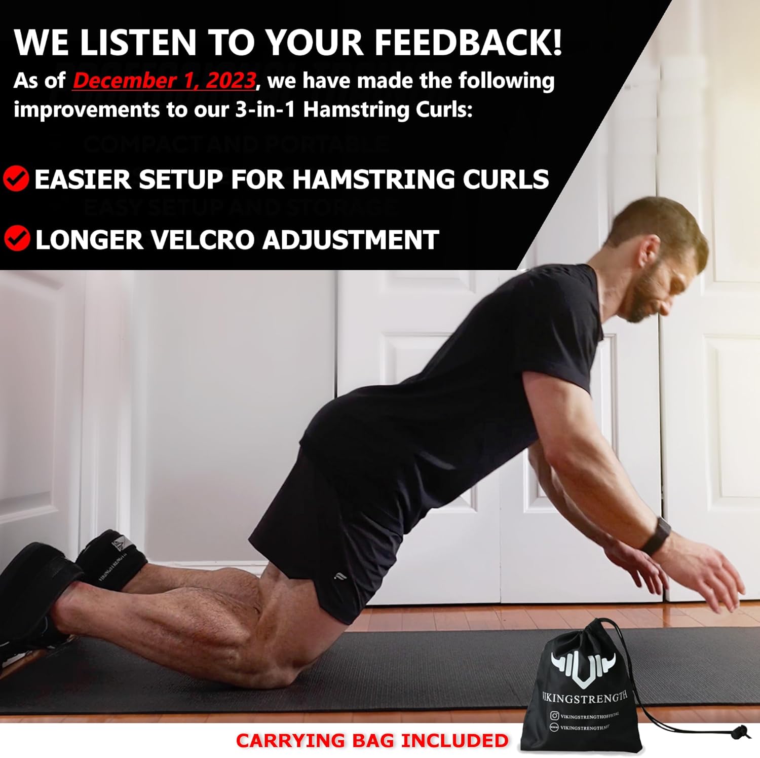REVOLUTIONIZE YOUR WORKOUT – Our patented Vikingstrength Nordic curl straps are the ultimate game-changer for hamstring and glute exercises. Two door-anchored straps put total control in your hands. Get ready to redefine your fitness journey with the premier Nordic curl solution!