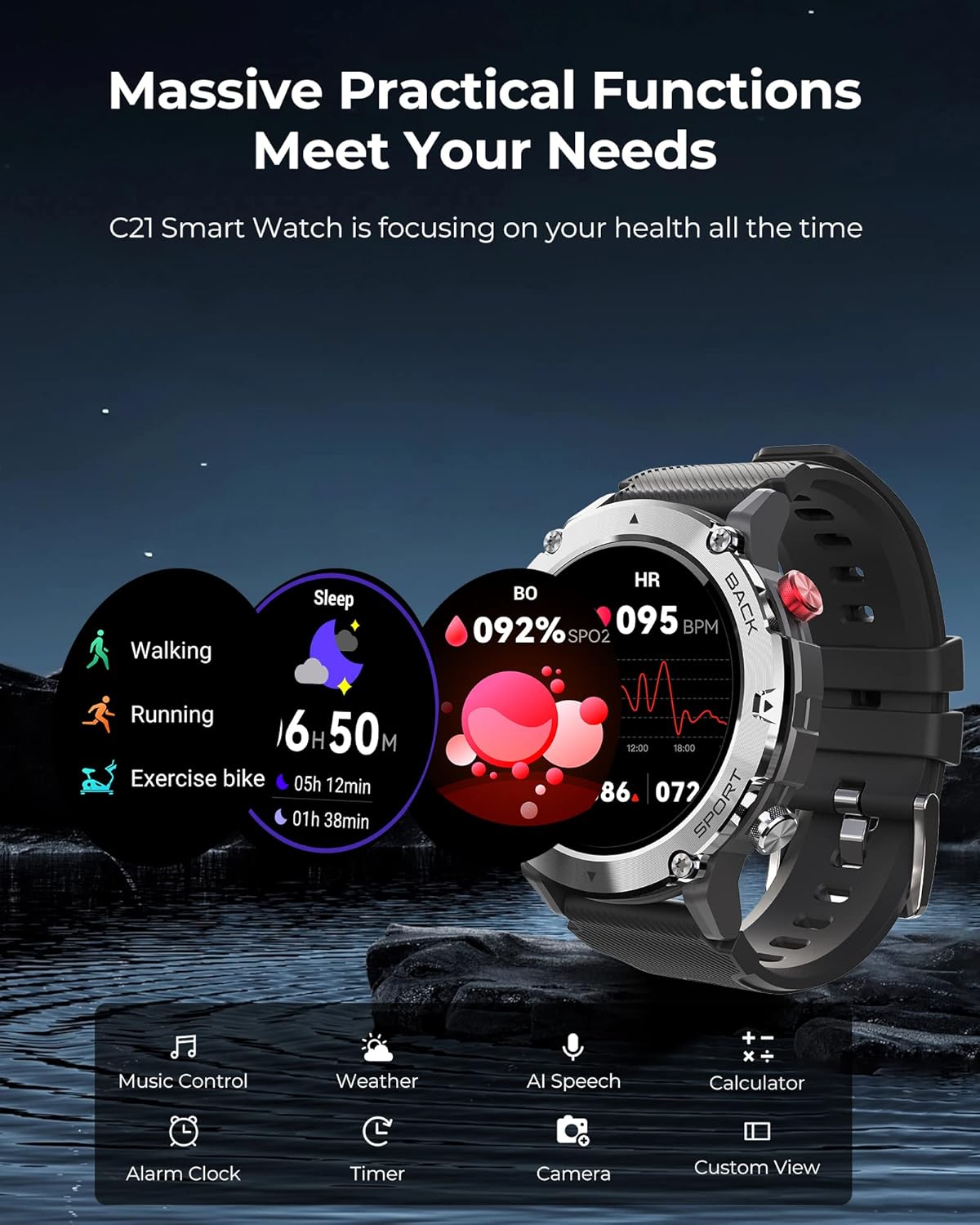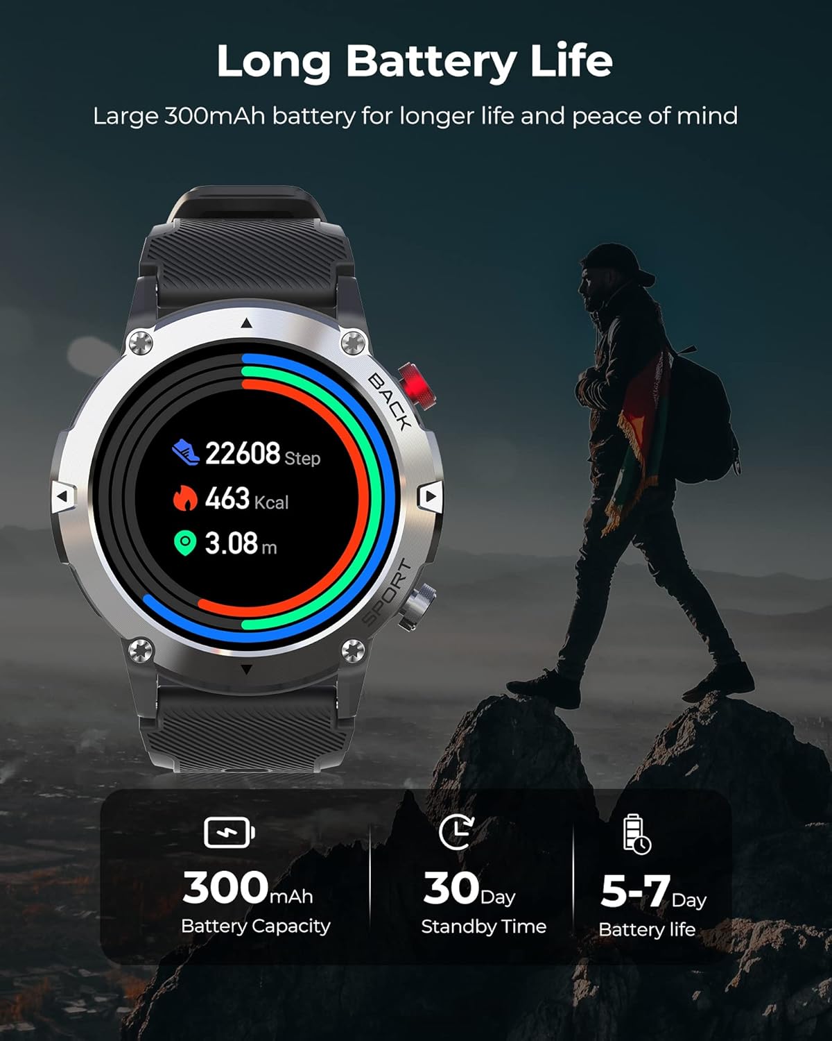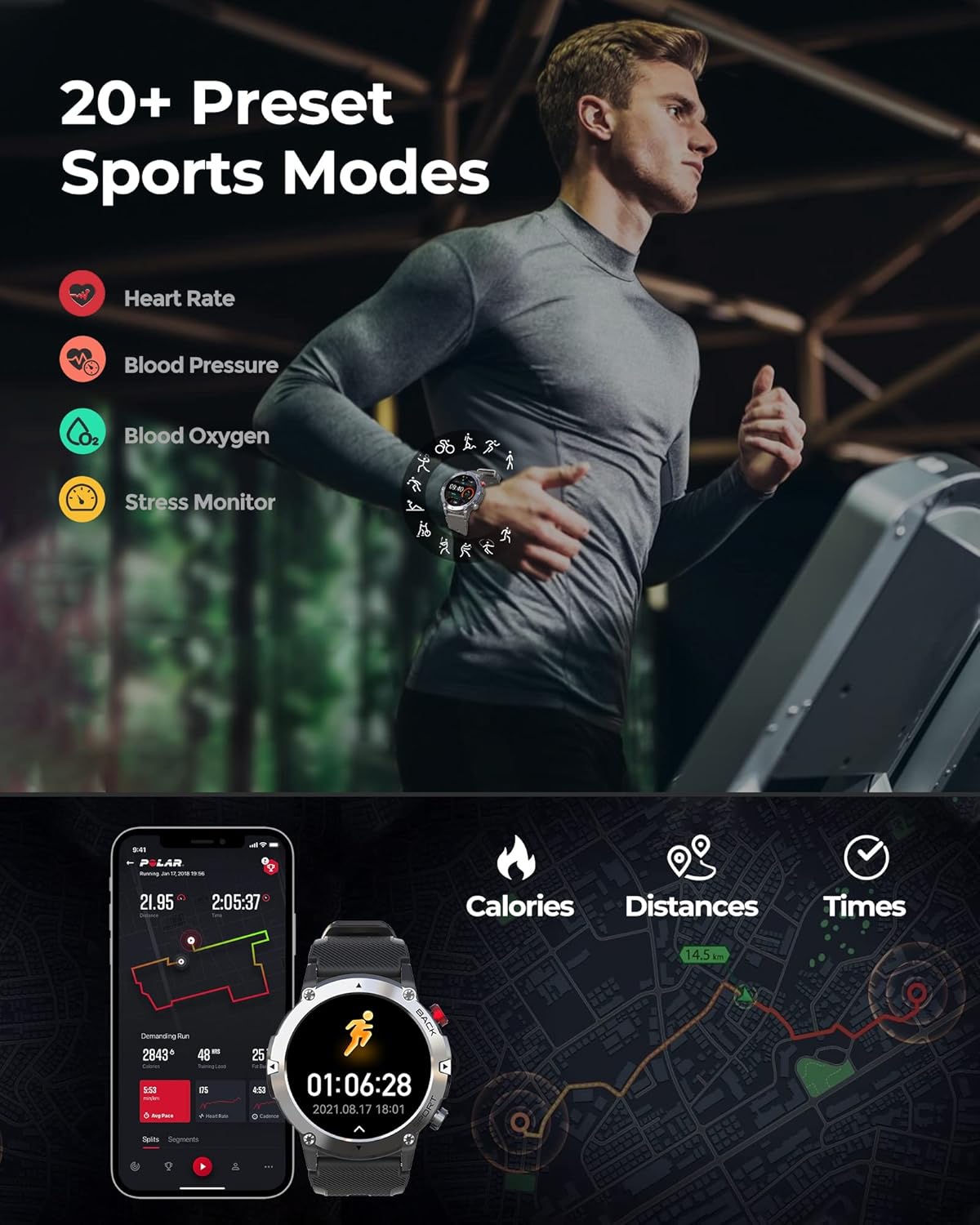 【Super Rugged for Outdoor】VIRAN military smart watch for men is specifically designed for outdoor enthusiasts, with the military standard of IP68 waterproof, shockproof, and anti-magnetic. This smart watch has passed dozens of standard tests like harsh temperature, dust resistance, salt spray, fluid pollution, etc. It’s made of fully enclosed ultra-thin micro-sandblasted metal frame and titanium shell to ensure durability, stability and functionality. Just come with it and enjoy the nature!