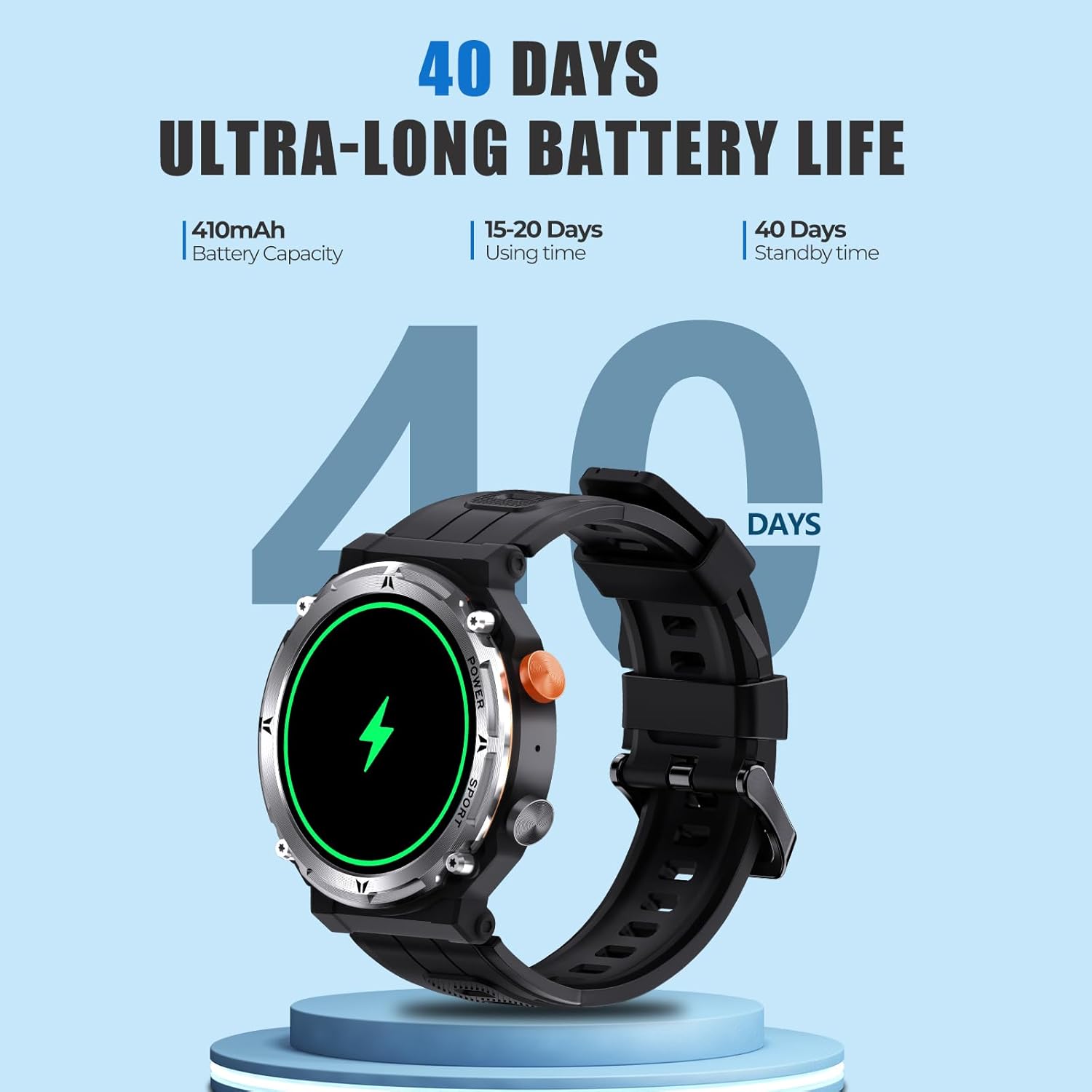 Bluetooth Calls Dial/answer: Make and answer phone calls directly from your wrist, enjoy quick and convenient communication.Military standard water-resistance: Dive into your adventures with peace of mind, accompany you through wet terrains and aquatic endeavors.Shock-resistance and Drop-resistant: Outstanding resilience in the face of high impacts, tackle any challenge with confidence, knowing it will remain functional and intact.Extended battery life: 410 mAh large battery capacity, daily used for 7-15 days, long standby for 40 days. Keeping you connected and powered throughout the day, without the need for frequent charging. Say goodbye to battery anxiety. Note: Usage depends on individual use.