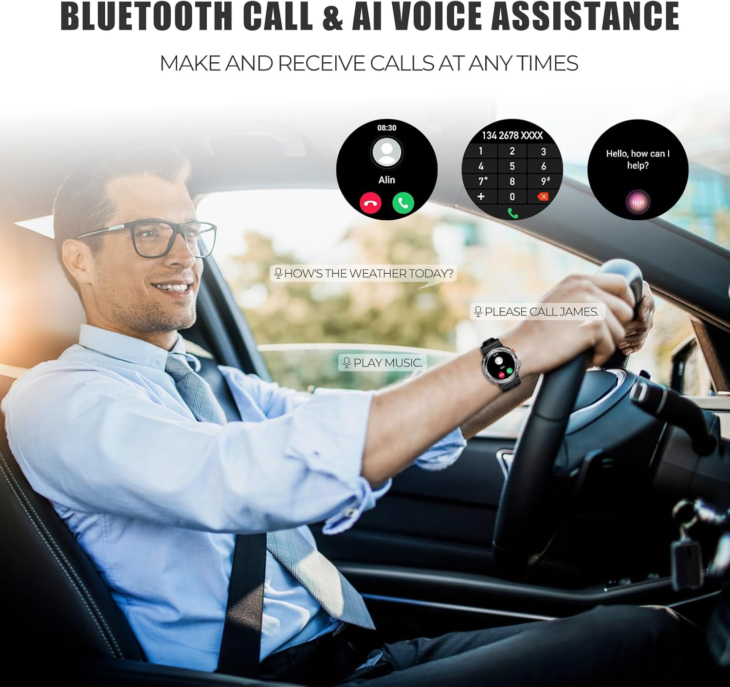 📞【Bluetooth Call & Voice Assistant】This latest upgraded bluetooth call smart watch with built-in microphone and speaker. Make, answer or reject calls with ease. With call records, contact lists; staying connected has never been easier. You can also activate your phone’s AI voice assistant to perform tasks such as making calls, playing music and checking weather. Upgrade your daily routine with our military smart watch and experience seamless Bluetooth calling and hands-free assistance.