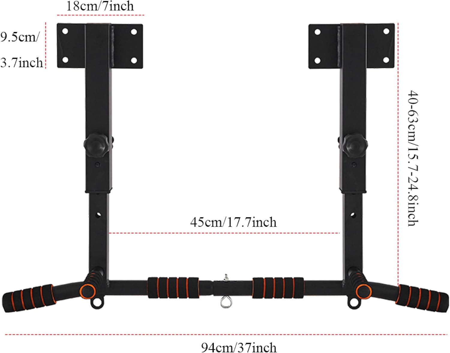 【Wall Mount Requirements】Concrete brick/solid cement wall/solid red brick wall /solid tile wall are a great surface for anchoring this wall mounted pull up bar. Don’t install on hollow brick wall/honeycomb brick wall/drywall/sandwich panel/wooden wall