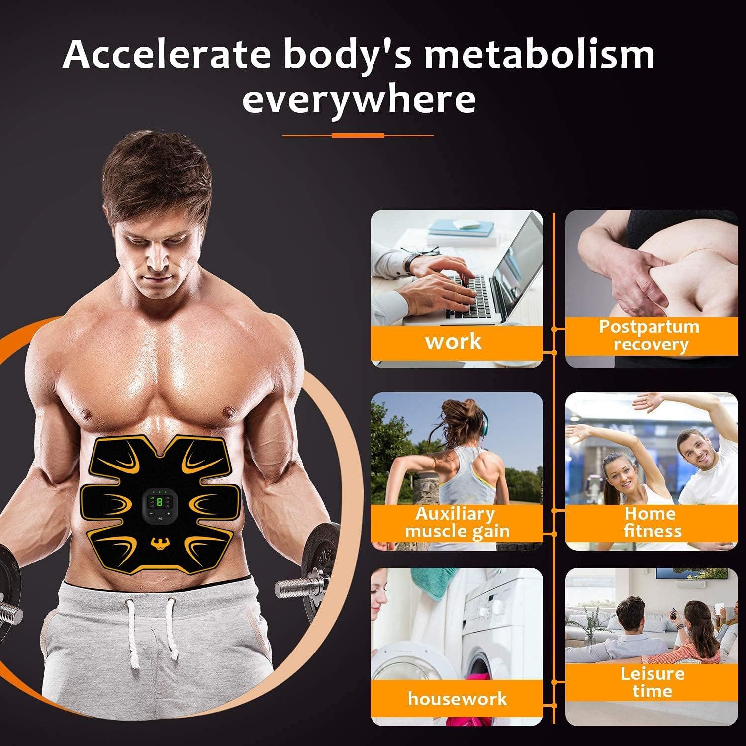 【PORTABLE & HOME EXERCISE EQUIPMENT】This Abs Muscle Stimulator can support your muscle toning & waist slimming without clunky wires getting in the way. This means you can experience the wonder of electronic impulse technology in a comfortable and portable way, aand take it wherever you go!