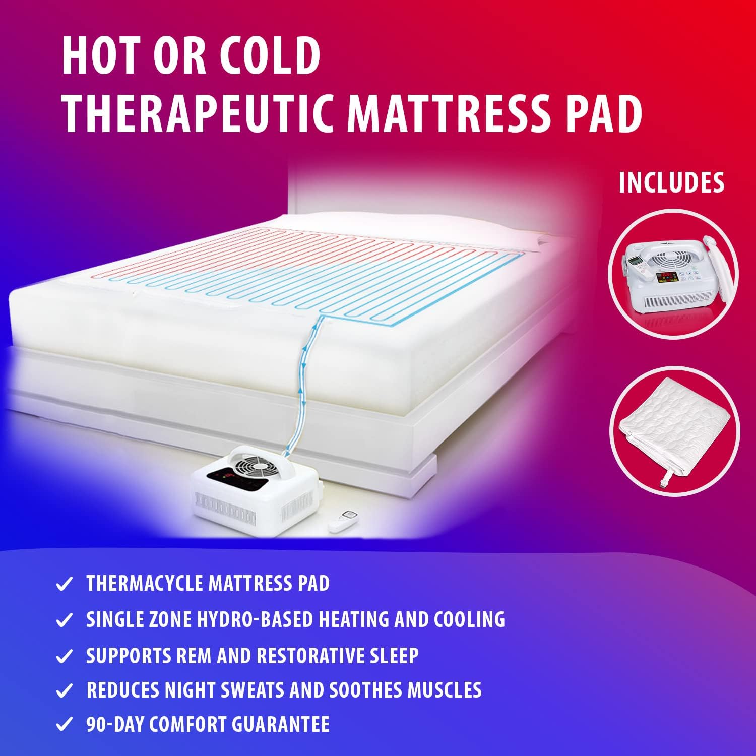SUPPORTS REM AND RESTORATIVE SLEEP: Better, deeper sleep starts with regulating your body’s internal temperature. Thermacycle’s constant climate control technology helps maintain homeostasis so you can experience healthier, more restful sleep. This mattress cooling technology can help reduce hot flashes in menopausal adults and is the number one sleep aid for adults in the world. There is no other menopause cooling pad in the world as effective as the Thermacycle mattress pad.