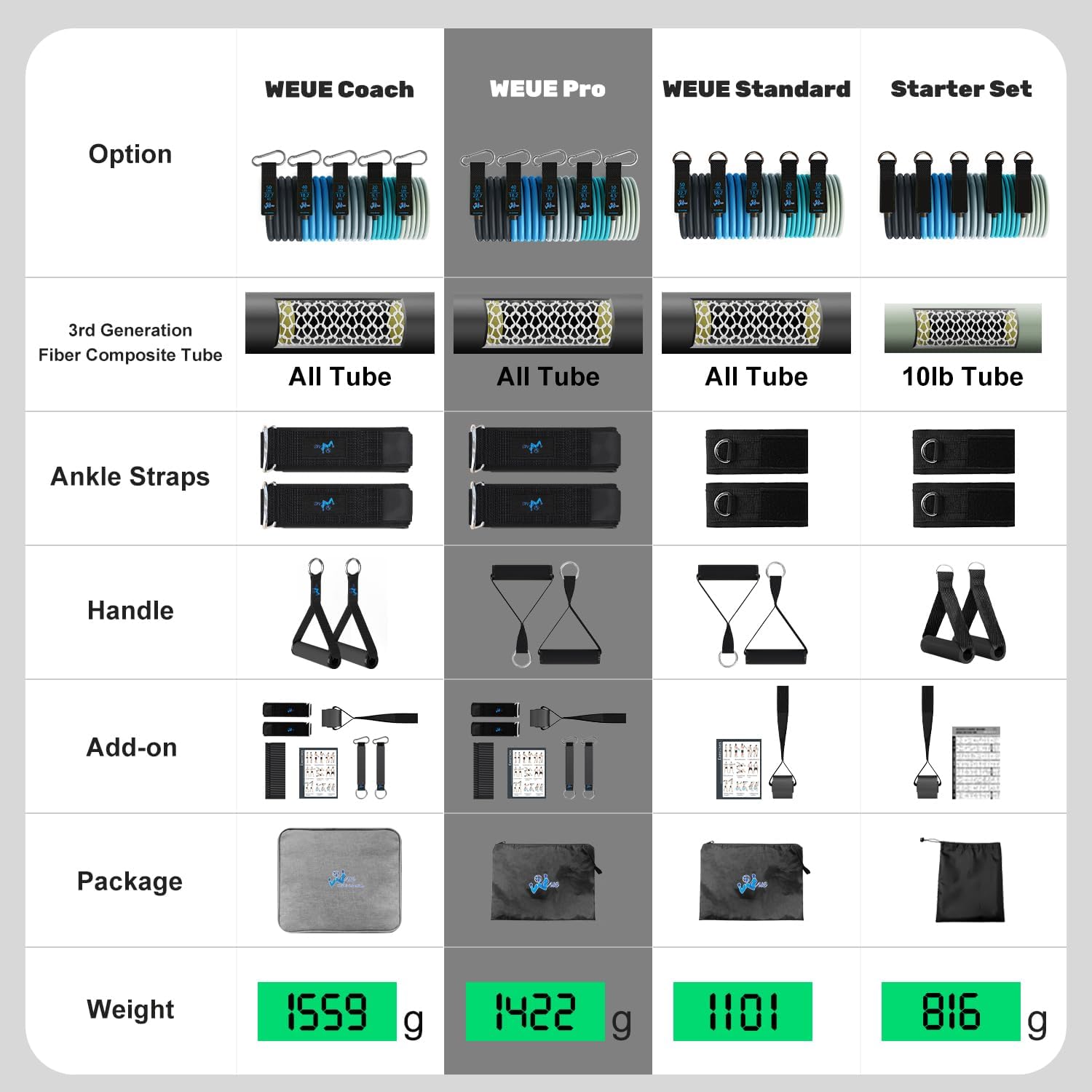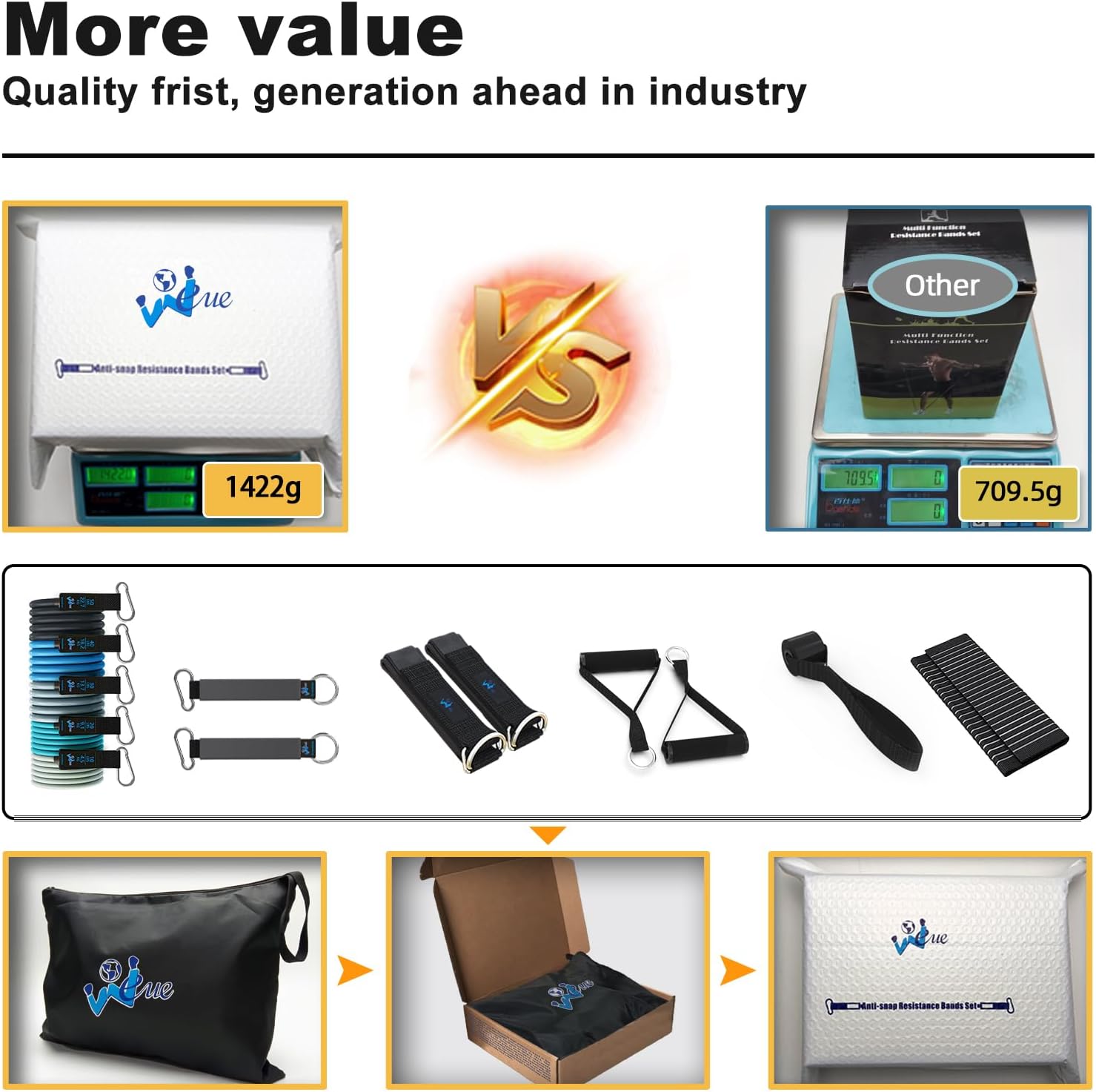 WEUE Resistance Bands Set Men and Women INVENTION Safety Tube Exercise Band for Fitness Workout, Training Bands Set Up to 150lbs with Foam Handles, Ankle Straps, Door Anchor for Gym and Home