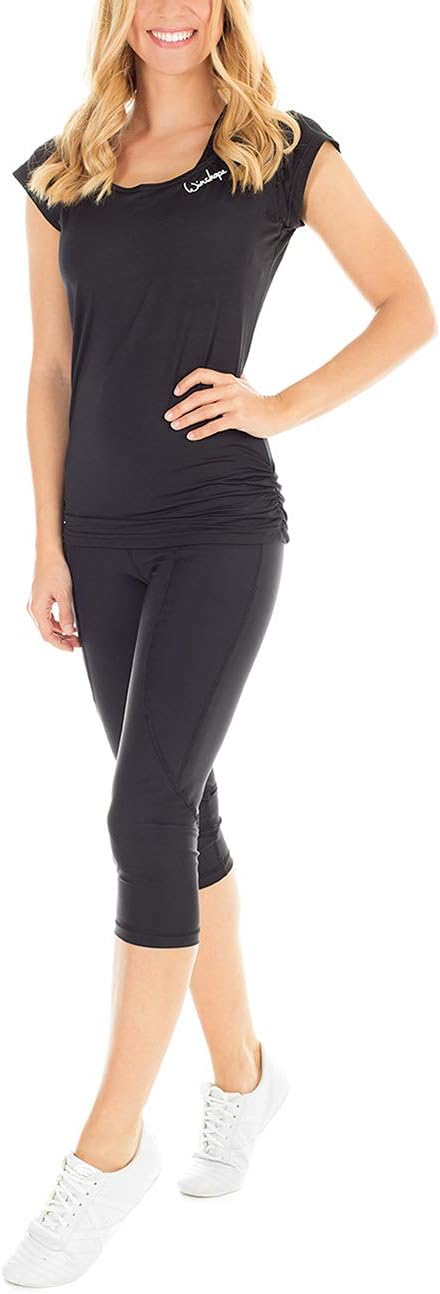 Super light functional short-sleeved shirt Aet106, Winshape slim style power moves made easy. The super light, made of high-quality functional fabric, Aet106 short-sleeved shirt is a must for all women who have friends with sweaty training activities. The figure-hugging, sporty, elegant cut with side ruffles and short sleeves guarantees unrestricted freedom of movement. The material specially developed for training provides a heavenly, dry wearing feeling. Recommendation: if you are between two sizes, order the larger one.