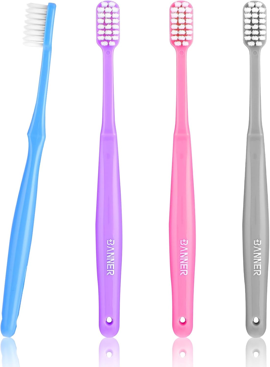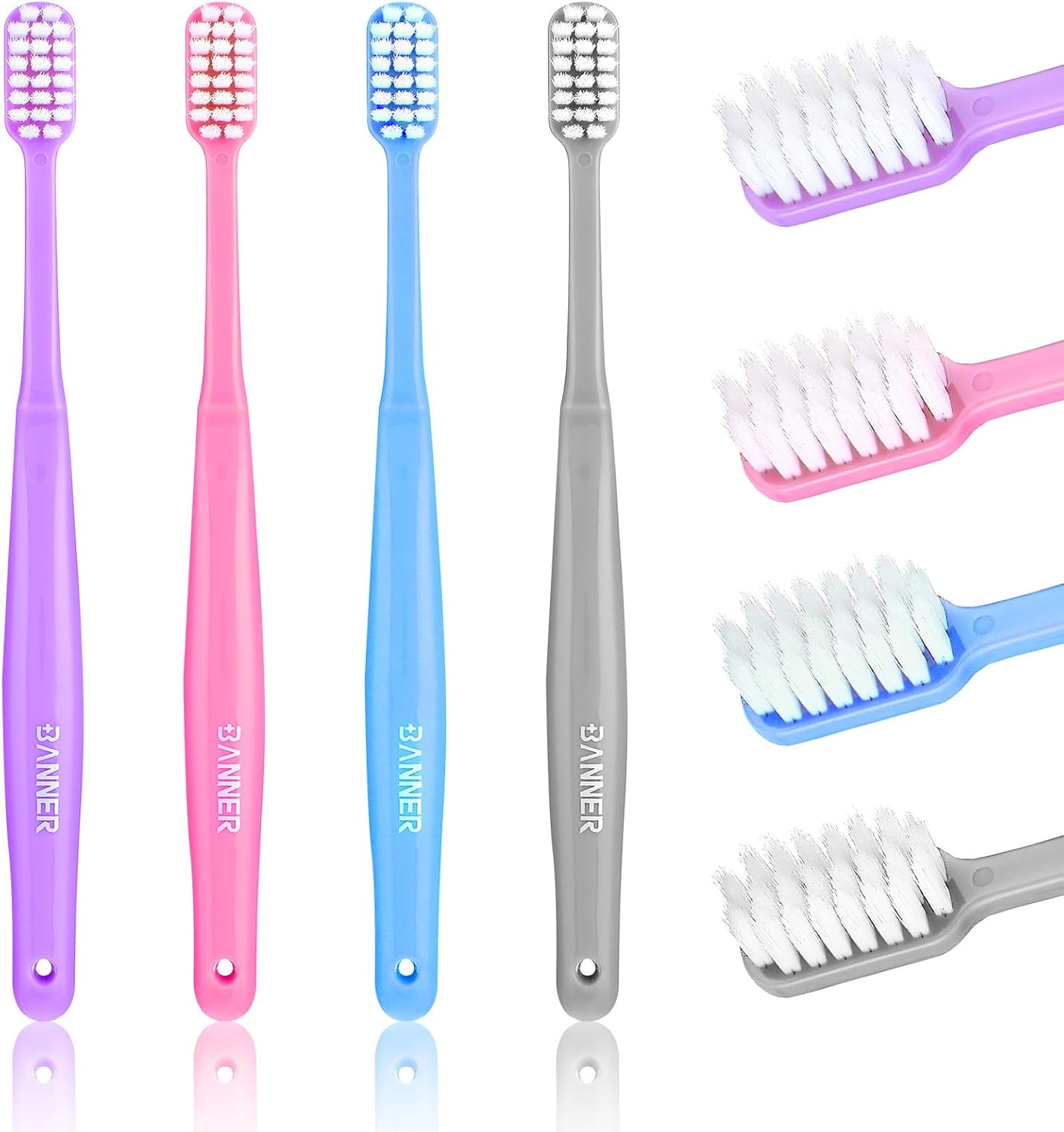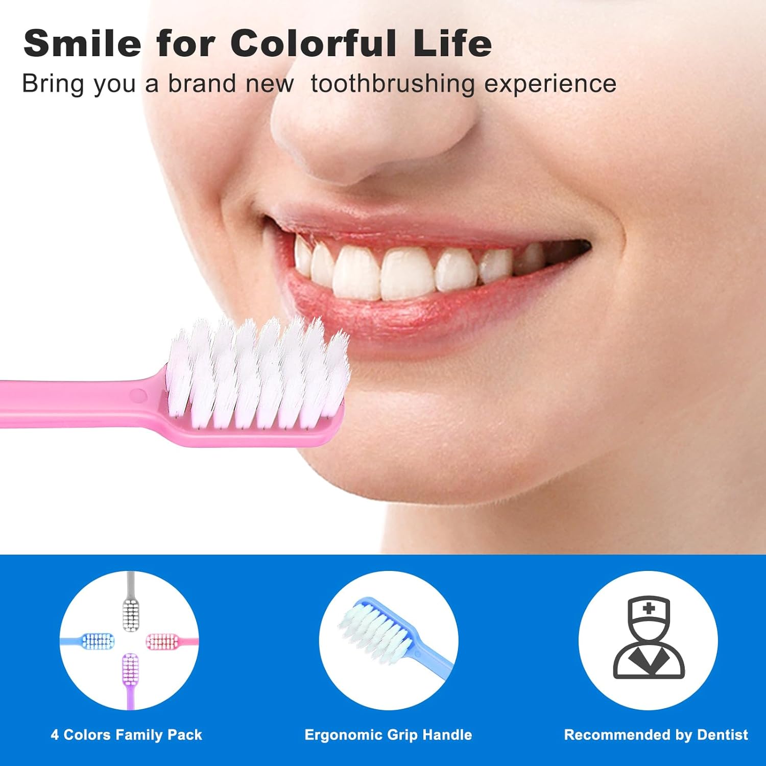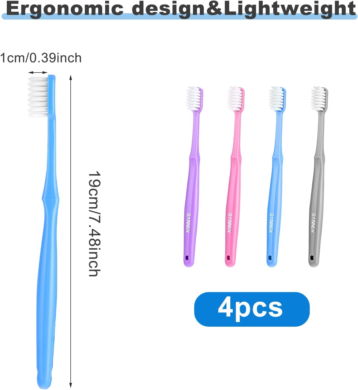 【What You Will Get】You will receive 4 feather soft toothbrushes, each toothbrush handle has a different color for easy identification, very suitable for family members to use
