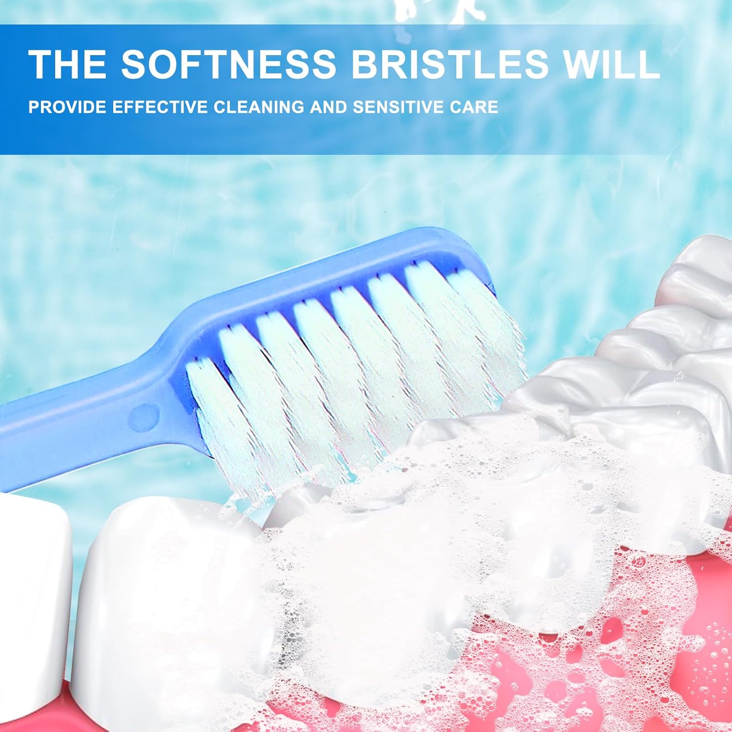 【High-Quality Material】The soft toothbrushes for adults are made of high-quality soft bristles. The travel toothbrush set has more than 50,00 super-soft bristles. The soft bristle toothbrush can clean between teeth and sensitive gum more deeply, remove bad breath, and keep your mouth fresh.