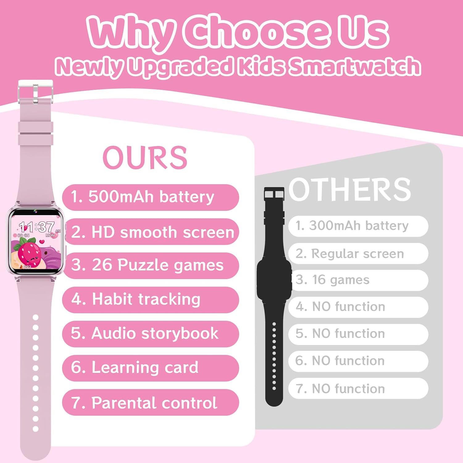 Easy-to-operate kids smart watch: Don’t need to download app, or connect cell phone, all the functions are built-in the kids watch, very easy to use for kids. And our kids smart watch is a perfect gift for kids to enjoy entertainment and learning, you add more fun to their life with a gift of a kids smart watch, you can break the addiction of kids to their smartphone, choose a new hobby.