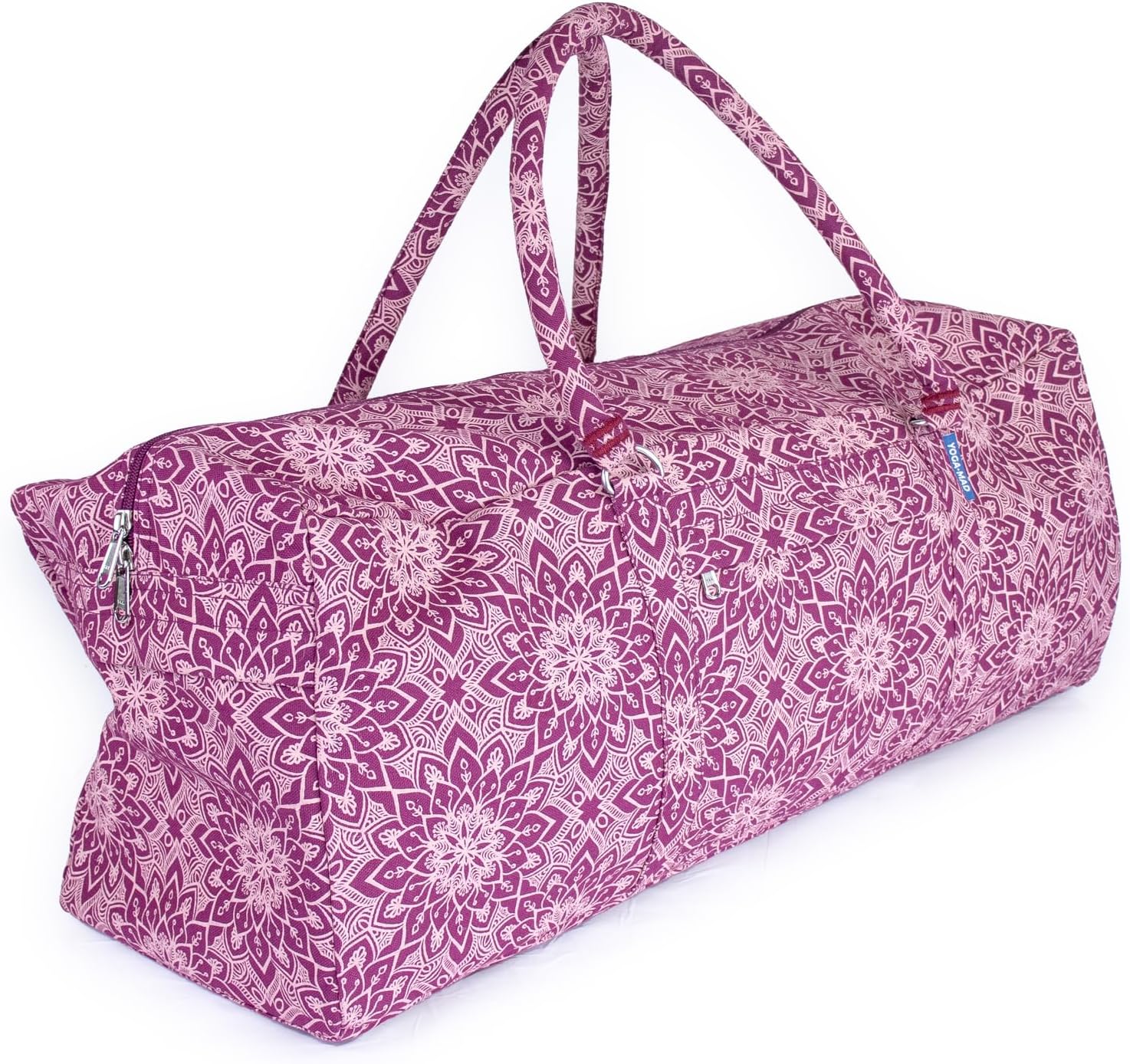LARGE CAPACITY: Being over 60cm in length, The Mandala Kit Bag can comfortably carry your gym gear, Pilates and Yoga equipment together in an easy package. Blankets, Blocks, Bolsters and Mats all make their way into the bag perfectly.