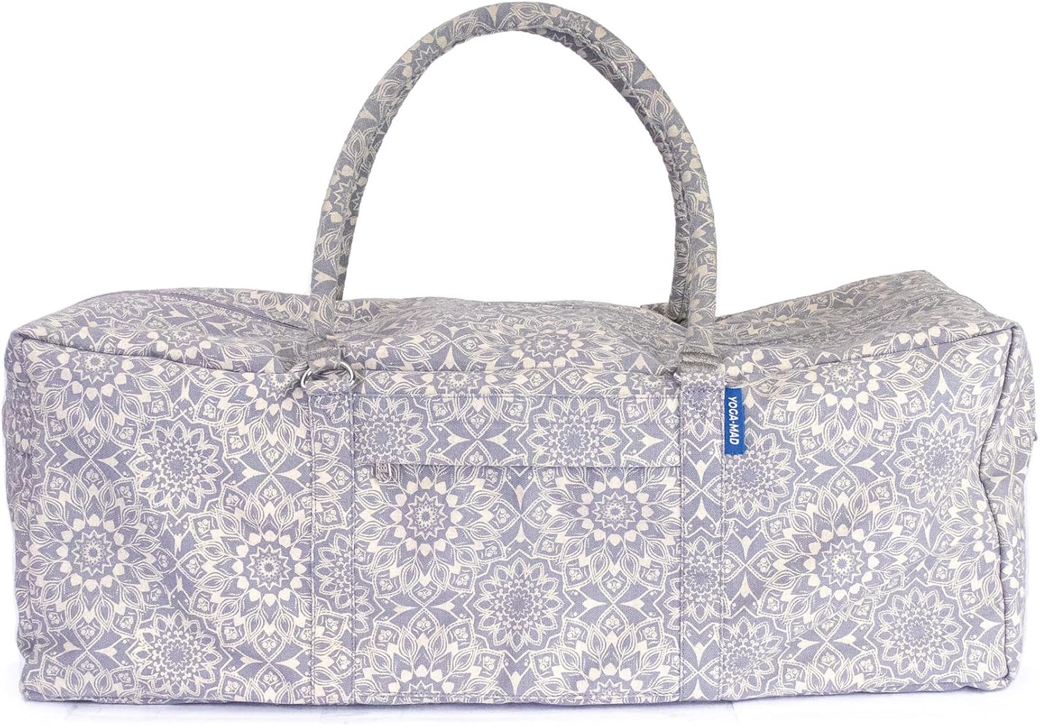 Yoga-Mad Full Print Mandala Yoga & Pilates Kit Bag, Unisex with Full Length Zip, Fits Most Flexible Mats, Yoga Blocks, Bolsters & Clothing | Burgundy, Grey or Blue.