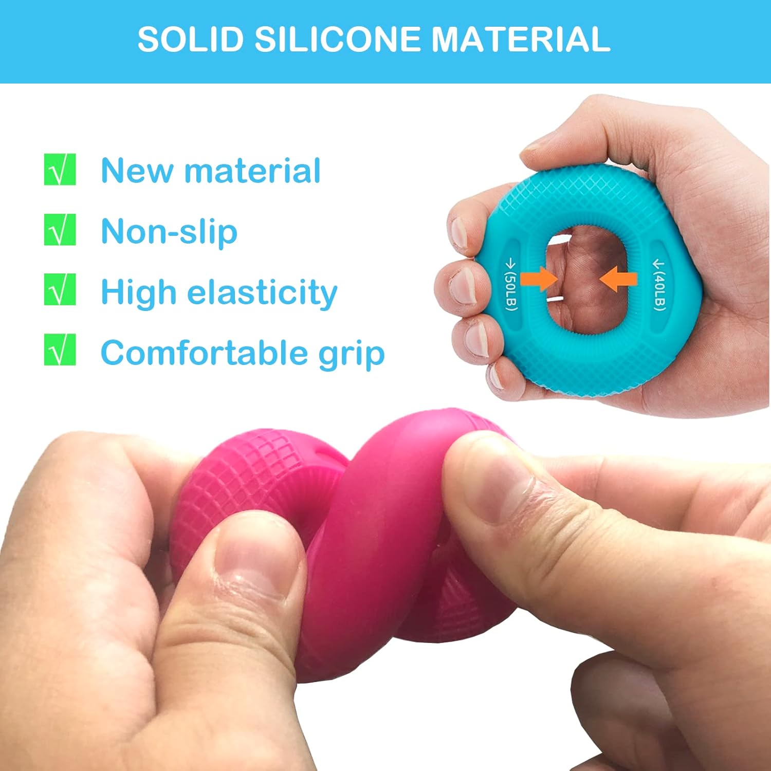 UPGRADED NEW MATERIAL: Our hand grip strengthener are made of top-quality silicone, not easy to tear, safe and durable. Waterproof and washable, can be use frequently and comfortably.