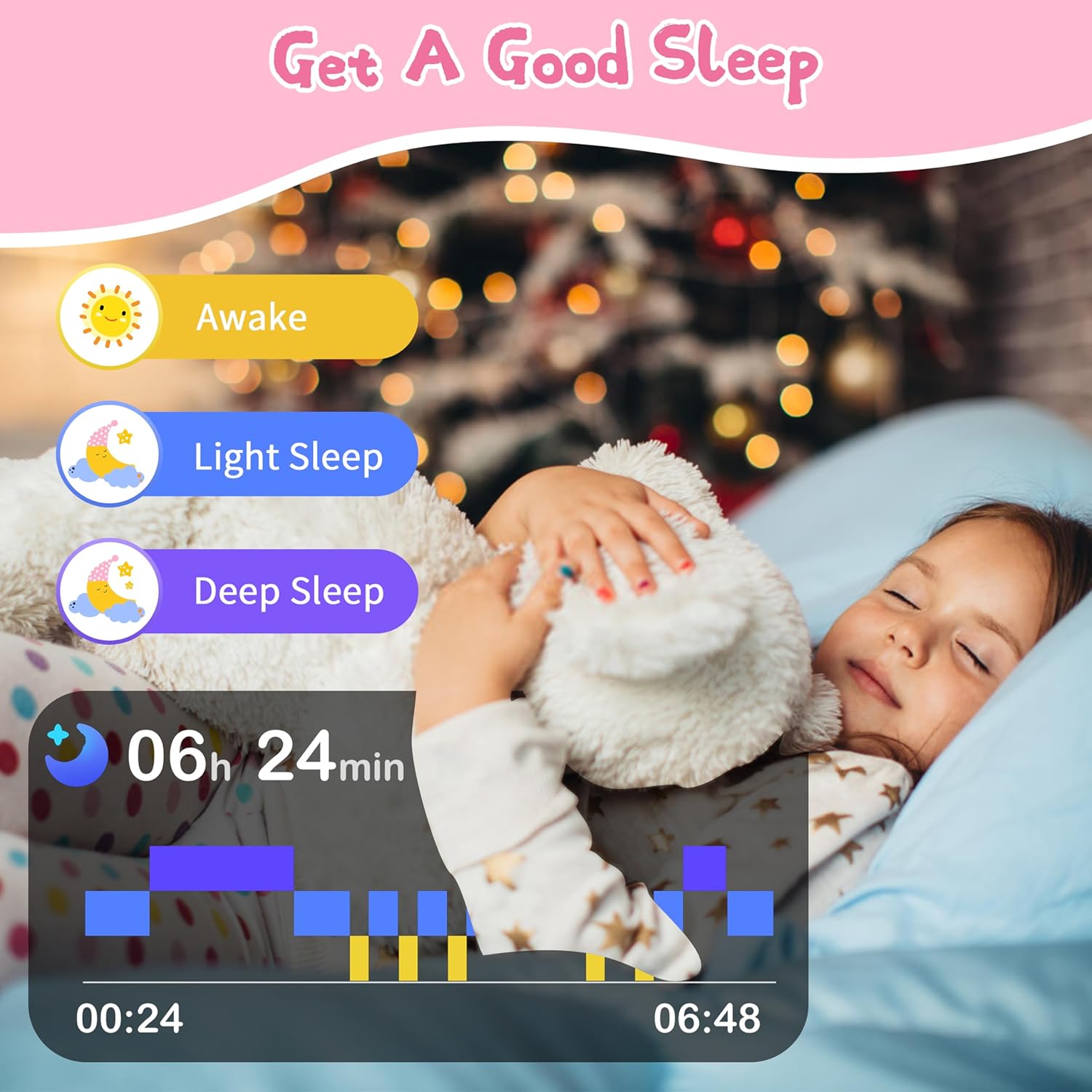 💤Sleep & Health Monitoring: The watch for kids help you concern your kids health. It monitors your kids real-time heart rate,and blood oxygen. And the fitness watch monitors your kid’s sleep automatically from 8.00PM-9.00AM. recording their deep sleep, light sleep, and wake time.
